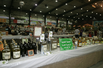 En la feria, unos 200 cooperativas y artesanos muestran diferentes alimentos, encurtidos, antigüedades, hortalizas, frutas y ornamentales ropa, jabón, aceites, libros y cintas de videos de la Resistencia.