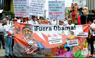 "No, no queremos y no nos da la gana ser una colonia norteamericana", "Obama go home", "ni militares ni petroleras, Obama fuera", eran algunas de las consignas que el grupo de manifestantes gritaban en el Parque Central de la capital costarricense.