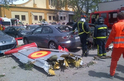 Un piloto de 35 años, ayudante del ministro de Defensa, Pedro Morenés, ha muerto a primera hora de la tarde del domingo tras haber sufrido al mediodía un accidente durante una exhibición aérea en el aeródromo de Cuatro Vientos, en Madrid. El comandante de la aeronave ha perdido su control y se ha estrellado contra el hangar de los helicópteros del Cuerpo Nacional de Policía. Otras ocho personas han tenido que ser atendidas por heridas de diversa consideración, entre ellos el padre del accidentado.