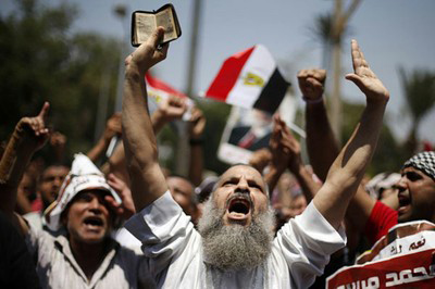 Los fieles al mandatario se resisten a aceptar el hecho consumado, juramento de presidente provisorio incluido, y están concentrados en el distrito capitalino de Ciudad Nasser, y en las proximidades de la Universidad de El Cairo, a la que se llega en pocos minutos en automóvil, aunque está en otra provincia, la de Giza.
